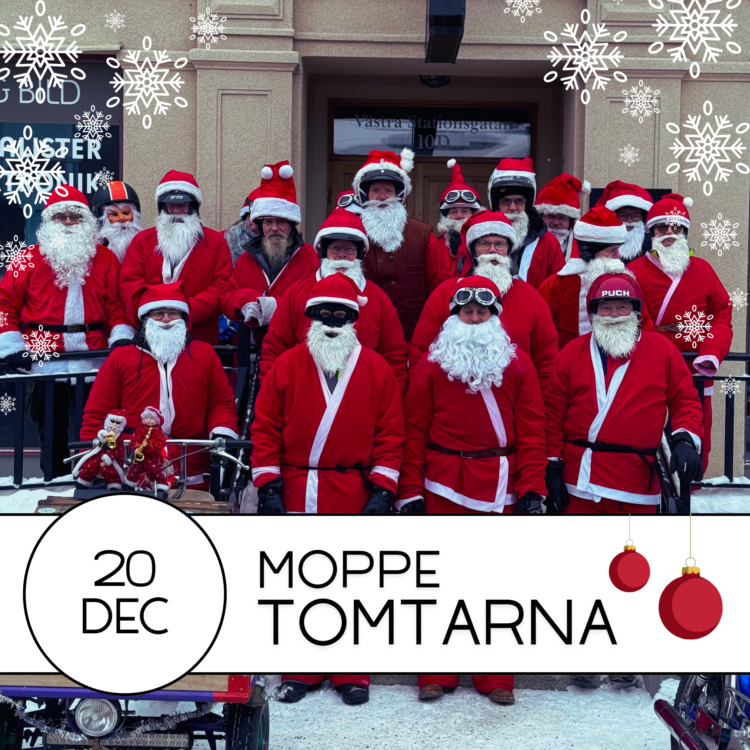 Lördag den 20 december kommer dom, det härliga gänget från Bollnäs Veteranmopedklubb, mer kända som MOPPETOMTARNA. Klockan 12 rullar dom in längs Långgatan och efter några varv runt julgranen på Brotorget stannar dom till för lite tomtefika och mingel på Stationsgatan. Den som säger att tomten inte finns har nog aldrig varit i Bollnäs.